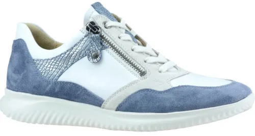 Sneakers van Hartjes in wit leer met blauw suede gecombineerd op een G wijdte op de leest Breeze. Aan de zijkant zit een rits waardoor die makkelijk is aan en uit te trekken. De schoen heeft een uitneembaar voetbed en is geschikt voor uw eigen steunzool. Een lage sleehak maakt de schoen compleet. De schoen is vervaardigd uit zacht plantaardig gelooide leersoorten. Kenmerkend is het lichte gewicht en het zachte gevoel met lopen. ||Hartjes is een Oostenrijks merk wat al sinds 1953 comfortabel schoeisel produceert met de hoogste kwaliteit en een rijke traditie van Oostenrijks schoenmakershandwerk. Het is een echt groen merk en produceren uitsluitend milieu vriendelijk in het hart van europa, met goede vakmensen, die onder goede omstandigheden werken. Innovatief , zoals het geïntegreerde , uitneembare lichtgewicht kurkvoetbed, natuurlijke voeringmaterialen als lamvel en walkloden (100% zuiver scheerwol), de plantaardig gelooide leersoorten. Hartjes verwerkt alleen hoogwaardige leersoorten. Ze beschermen de voet door haar robuustheid, de binnenzijde voelt zijdezacht aan en door haar natuurlijke, nerfstructuur maakt het iedere schoen uniek. Hartjes koopt u online bij Ruttenschoenen.nl