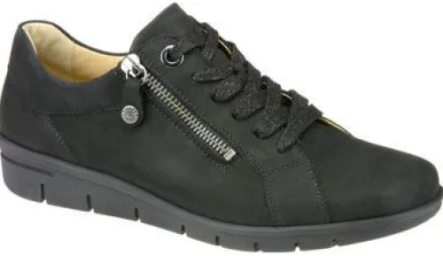 Sneakers van Hartjes in zwart nubuck op een brede H wijdte op de leest xs Sun. Aan de zijkant zit een rits waardoor de schoen makkelijk is aan en uit te trekken. De schoen is soepel met dragen en heeft een sleehak. Door het uitneembare voetbed is die geschikt voor uw eigen steunzool. De schoen is vervaardigd uit zacht plantaardig gelooide leersoorten. Kenmerkend is het lichte gewicht en het zachte gevoel met lopen. ||Hartjes is een Oostenrijks merk wat al sinds 1953 comfortabel schoeisel produceert met de hoogste kwaliteit en een rijke traditie van Oostenrijks schoenmakershandwerk. Het is een echt groen merk en produceren uitsluitend milieu vriendelijk in het hart van europa, met goede vakmensen, die onder goede omstandigheden werken. Innovatief , zoals het geintegreerde, uitneembare lichtgewicht kurkvoetbed, natuurlijke voeringmaterialen als lamvel en walkloden (100% zuiver scheerwol), de plantaardig gelooide leersoorten. Hartjes verwerkt alleen hoogwaardige leersoorten. Ze beschermen de voet door haar robuustheid, de binnenzijde voelt zijdezacht aan en door haar natuurlijke, nerfstructuur maakt het iedere schoen uniek. Hartjes koopt u online bij Ruttenschoenen.nl