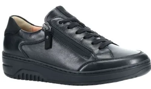 Sneakers van Hartjes in zwart glimmend leer met een lange vetersluiting en een rits. Gemaakt op een extra brede K wijdte op de leest Soul. Bij de hiel zit een polsterrand. De schoen heeft een uitneembaar voetbed en is geschikt voor uw eigen steunzool. Een bijna platte sleehak maakt de schoen compleet. Kenmerkend is het lichte gewicht en het zachte gevoel met lopen. ||Hartjes is een Oostenrijks merk wat al sinds 1953 comfortabel schoeisel produceert met de hoogste kwaliteit en een rijke traditie van Oostenrijks schoenmakershandwerk. Het is een echt groen merk en produceren uitsluitend milieu vriendelijk in het hart van europa, met goede vakmensen, die onder goede omstandigheden werken. Innovatief , zoals het geintegreerde, uitneembare lichtgewicht kurkvoetbed, natuurlijke voeringmaterialen als lamvel en walkloden (100% zuiver scheerwol), de plantaardig gelooide leersoorten. Hartjes verwerkt alleen hoogwaardige leersoorten. Ze beschermen de voet door haar robuustheid, de binnenzijde voelt zijdezacht aan en door haar natuurlijke, nerfstructuur maakt het iedere schoen uniek. Hartjes koopt u online bij Ruttenschoenen.nl