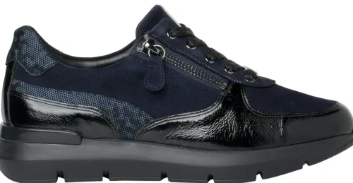 Sneaker van Hassia in blauw suede met lak en extra ruimte bij de knok. Gemaakt op een brede H wijdte op de leest Bordeaux. De schoen heeft een rits aan de zijkant waardoor die makkelijk is aan en uit te trekken. Het voetbed is uitneembaar en daardoor geschikt voor een eigen steunzool. ||Hassia is een Duits fabrikaat, met diverse leesten en wijdtematen. Het zijn vaak wat luxere schoenen, vervaardigd uit mooie kalfsleersoorten. Hassia koopt u online en offline bij Ruttenschoenen.nl