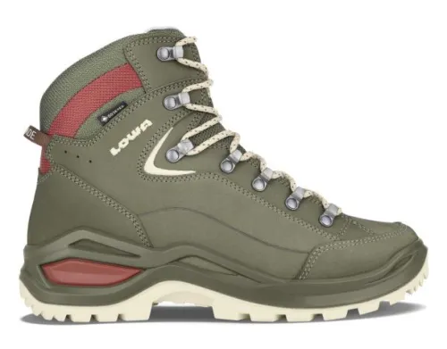 Boot van Lowa in groen nubuck met rode accenten en met Goretex gevoerd waardoor wind en waterdicht. Deze uitvoering de Renegade Mid evo heeft minder naden en meer demping in de hiel dan zijn voorganger. Gemaakt voor vele kilometers loopplezier met uitneembaar voetbed, dus ook prima geschikt voor uw eigen steunzool. Het is een boot die voor vele gebruiksmomenten is te gebruiken, maar ook om lekker op te wandelen. De onderwerken zijn van PU wat licht van gewicht en slijtvast is. Na jaren vergaat Pu en u heeft er langer plezier van als ze regelmatig gedragen worden. ||De fabriek van Lowa staat in Duitsland en ze maken hoogwaardige (berg) wandelschoenen. hoogwaardige (berg) wandelschoenen. Lowa koop je online bij Ruttenschoenen.nl De Renegade GTX Mid Ws is waarschijnlijk de meest verkochte (berg)wandelschoen in Europa en inmiddels een klassieker onder de multifunctionele schoenen. Deze klassieker is perfect voor tochten op goed begaanbare paden. Om de veelzijdigheid van de schoenen zo veel mogelijk te vergroten. heeft LOWA een stevige upper van nubuck leer met suede splitleer gecombineerd. samen met een unieke zoolconstructie en andere technische features. Dit damesmodel is op een speciale damesleest gemaakt. De perfecte pasvorm overtuigt vanaf het eerste moment dat je deze wandelschoenen aantrekt