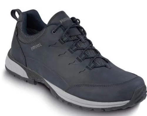 Wandelschoen van Meindl op een wat smallere leest zoals de Durban in blauw nubuck. ca een G/H wijdte. Deze nieuwe Meindl heeft een echte stevige wandelzool. De Meindl Multigrip G5 Hiking rubber profielzool met een EVA dempende keil. De schoen is gevoerd met Goretex dus wind en water dicht. De voetbedden zijn uitneembaar. ||De fabriek van Meindl staat in zuid Duitsland en ze maken hoogwaardige (berg) wandelschoenen.