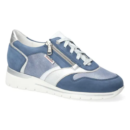 Sneaker van Mephisto Mobil in een blauw met wit combinatie nubuck. De Mobils van Mephisto hebben een bredere leest ca H wijdte. Aan de buitenkant zit een rits waardoor als de veter eenmaal goed is ingesteld de schoen makkelijk is aan en uit te trekken. De schoen voelt lekker zacht aan. De sleehak is iets hoger en de zool heeft een profiel en is comfortabel met lopen. De schoen heeft een uitneembaar voetbed en is daardoor geschikt voor uw eigen steunzool. ||Mephisto is een Frans fabrikaat en heeft diverse fabrieken. Mephisto kenmerkt zich als een comfortabele schoen die meestal niet uitgelopen hoeft te worden, ook de zool is zacht en verend. Een echte schoen voor kilometers loopplezier. meestal niet uitgelopen hoeft te worden, ook de zool is zacht en verend. Een echte schoen voor kilometers loopplezier. Mephisto Koopt u online bij Ruttenschoenen.nl