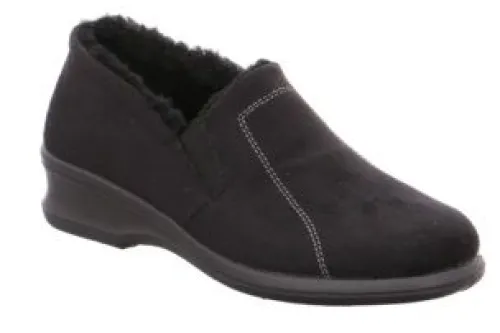 Dames pantoffel in zwart velour met lamsvacht voering op een F wijdte. Deze valt breed uit. Aan de zijkanten zit elastiek, voor een zachte betere sluiting. ||Rohde is van oorsprong een Duitse firma en inmiddels overgenomen door een Italiaan. Rohde wordt hoofdzakelijk in de aziatische landen gefabriceerd. ||Dit artikel wordt regelmatig nabesteld, mocht uw maat ontbreken kunt u altijd contact met ons opnemen en/of reserveren.