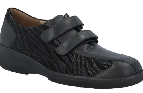 Klittenband schoen van Solidus, verstelbaar met klittenband in zwart leer in combinatie met een fantasie print. De schoen heeft een lage hak ca 25 mm. Gemaakt op een smalle F wijdte op de leest Hedda en is geschikt voor uw eigen steunzool. ||Solidus is een Duits fabricaat, met diverse leesten en wijdtematen, van smal tot super breed. Ze gebruiken zachte leersoorten, waardoor ze vaak zeer comfortabel en geschikt voor gevoelige voeten zijn. Vor de zeer gevoelige en of diabete voet, maken ze ook nog een speciale collectie “Solicare” Veel leesten en artikelen komen vaak weer terug, veelal in een andere uitvoering. Ze gebruiken zachte leersoorten, waardoor ze vaak zeer comfortabel en geschikt voor gevoelige voeten zijn. Vor de zeer gevoelige en of diabete voet, maken ze ook nog een speciale collectie “Solicare” Veel leesten en artikelen komen vaak weer terug, veelal in een andere uitvoering. Solidus koopt u off en online bij Ruttenschoenen.nl
