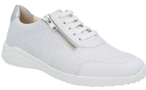 Sneaker van Solidus met veter te verstellen in wit leer met een perforatie. Aan de zijkant zit een rits waardoor als de veter eenmaal gesteld is de schoen makkelijk aan en uit te trekken is. De sneaker heeft een bijna platte hak en een soepele buigzame zool. Gemaakt op een brede H wijdte op de leest Hyle De voetbedden zijn uitneembaar en de schoen is dus geschikt voor uw eigen steunzool. ||Solidus is een Duits fabricaat, met diverse leesten en wijdtematen, van smal tot super breed. Ze gebruiken zachte leersoorten, waardoor ze vaak zeer comfortabel en geschikt voor gevoelige voeten zijn. Voor de zeer gevoelige en of diabete voet, maken ze ook nog een speciale collectie “Solicare” Veel leesten en artikelen komen vaak weer terug, veelal in een andere uitvoering. Solidus koopt u online bij Ruttenschoenen.nl