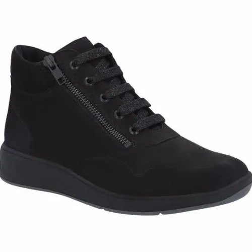 Boot van Solidus verstelbaar met een veter in zwart nubuck op een brede H wijdte op de leest Halea. Bij de zijkant zit een rits waardoor die makkelijk is aan en uit te trekken. Met een lage doorlopende zool en een uitneembaar voetbed zijn ze dus geschikt voor uw eigen steunzool. ||Solidus is een Duits fabricaat, met diverse leesten en wijdtematen, van smal tot super breed. Ze gebruiken zachte leersoorten, waardoor ze vaak zeer comfortabel en geschikt voor gevoelige voeten zijn. Vor de zeer gevoelige en of diabete voet, maken ze ook nog een speciale collectie “Solicare” Veel leesten en artikelen komen vaak weer terug, veelal in een andere uitvoering. Solidus koopt u off en online bij Ruttenschoenen.nl