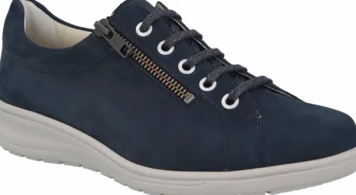 Sneaker van Solidus verstelbaar met een veter in blauw nubuck en een licht gekleurde zool. Aan de zijkant zit een rits waardoor die makkelijk is aan en uit te trekken. Op een lage hak van ca 25 mm. Geschikt voor uw eigen steunzool op een extra brede K wijdte, op de leest Kate. ||Solidus is een Duits fabricaat, met diverse leesten en wijdtematen, van smal tot super breed. Ze gebruiken zachte leersoorten, waardoor ze vaak zeer comfortabel en geschikt voor gevoelige voeten zijn. Vor de zeer gevoelige en of diabete voet, maken ze ook nog een speciale collectie “Solicare” Veel leesten en artikelen komen vaak weer terug, veelal in een andere uitvoering. Solidus koopt u off en online bij Ruttenschoenen.nl