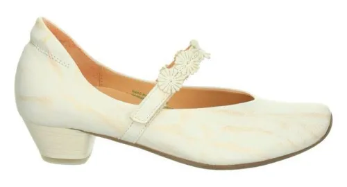 Bandschoen van Think op de bekende comfortabele Aida leestmet een klein hakje in off white leer. De schoen is met klittenband te verstellen en is zacht van leer. De schoen is met leer gevoerd en gemaakt op ca een H wijdte. De voetbedden zijn uitneembaar. ||Think is een merk wat uit Oostenrijk komt en bekend staat om hun eigenzinnige collectie vervaardigd uit mooie en aparte materialen. De meeste voetbedden zijn uitneembaar. Het leer wordt plantaardig gelooid. Think maakt geen wijdte maten, maar de schoenen worden vaak op een bredere leest gemaakt. Think koopt u online bij Ruttenschoenen.nl