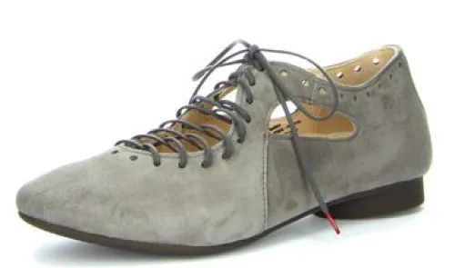 Open gewerkte veterschoen van Think in groen suède met een platte hak. De schoen is leer gevoerd. Gemaakt op de leest Guad. De voetbedden zijn uitneembaar, dus ze zijn geschikt voor uw eigen steunzool. ||Think is een merk wat uit Oostenrijk komt en bekend staat om hun eigenzinnige collectie vervaardigd uit mooie en aparte materialen. De meeste voetbedden zijn uitneembaar. Het leer wordt plantaardig gelooid. Think maakt geen wijdte maten, maar de schoenen worden vaak op een bredere leest gemaakt.