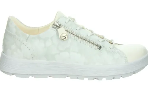 Sneaker van Think met een bijna platte hak in off white leer met een rits aan de zijkant. De schoen gaat ver open en heeft een ruime leest met veel ruimte bij de tenen. De schoen is met leer gevoerd en gemaakt op ca een H wijdte en de leest Comoda. De zool heeft een profiel en de hak is bijna plat, De voetbedden zijn uitneembaar. ||Think is een merk wat uit Oostenrijk komt en bekend staat om hun eigenzinnige collectie vervaardigd uit mooie en aparte materialen. De meeste voetbedden zijn uitneembaar. Het leer wordt plantaardig gelooid. Think maakt geen wijdte maten, maar de schoenen worden vaak op een bredere leest gemaakt. Think koopt u online bij Ruttenschoenen.nl