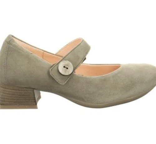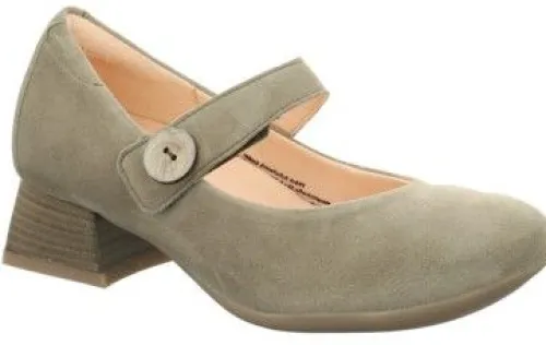 Deze bandschoen van Think is gemaakt van superzacht kaky kalfs suede. Het chroomvrij gelooid leer is bijzonder ademend en biedt zo een optimaal voetklimaat. De band op de wreef is te verstellen met klittenband. Door de afgeronde, anatomisch gevormde leest biedt voldoende ruimte voor de tenen. De hakhoogte is 3,5 cm. De zolen zijn uitneembaar waardoor de schoen geschikt is voor een eigen steunzool. ||Think is een merk wat uit Oostenrijk komt en bekend staat om hun eigenzinnige collectie vervaardigd uit mooie en aparte materialen. De meeste voetbedden zijn uitneembaar. Het leer wordt plantaardig gelooid. Think maakt geen wijdte maten, maar de schoenen worden vaak op een bredere leest gemaakt.