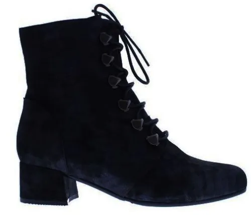 Geklede boot van Verhulst in zwart suede op een brede H wijdte op de leest Lisa. Aan de binnenzijde zit een rits, waardoor die makkelijk aan en uit te trekken is. De boot heeft een stevige blokhak van ca 35 mm. De voetbedden zijn uitneembaar, waardoor de boot ook geschikt is voor eigen steunzool. ||Verhulst is een Nederlands fabrikaat, met diverse leesten en wijdtematen. Het ontwerp en de afwerking geschied in Tilburg. De productie vindt in het buitenland plaats,onder toezicht van eigen mensen. Verhulst koop je off en online bij Ruttenschoenen.