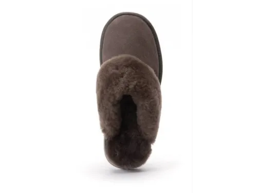Pantoffelslipper van Warmbat gevoerd met lamsvacht in taupe suede. De slipper heeft een bontrand over de wreef. De pantoffel is lekker zacht op de huid en heeft een comfortabele antislip, slijtvaste en schokdempende zool. ||||Warmbat komt uit Australie waar zij al meer dan 100 jaar wol van de merino schaap gebruiken. Er wordt 100% merino wol gebruikt wat het voordeel geeft van een goede kwaliteit en een goed ademend vermogen. De vezels kunnen tot 30% van het eigen gewicht aan vocht absorberen. ook is deze natuurlijke vacht temperatuur regulerend waardoor ze het hele jaar door zijn te dragen. Daarbij is het van natuur ook antibacterieel