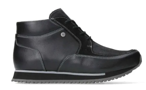 De E Walk is een dames boot van Wolky met een speciale zool met een extra afwikkeling die het lopen vergemakkelijkt. Uitermate geschikt voor voeten met een verstijfde grote teen. Gemaakt in zwart leer met suede spiegel en accenten. De boot is verstelbaar met een veter en geschikt voor uw eigen steunzool. Op de leest E walk. De boot heeft een bijna platte hak en een fijne profiel zool. ||Wolky is een Nederlands merk, wat grotendeels in Portugal geproduceerd wordt. Ze hebben vaak een wat bredere leest en bieden ook vaak goed ruimte bij de tenen. Kenmerkend zijn de zachte zolen waarop u verend loopt. Het lopen op wolken effect. Wolky wordt dan ook vaak als zeer comfortabel ervaren.