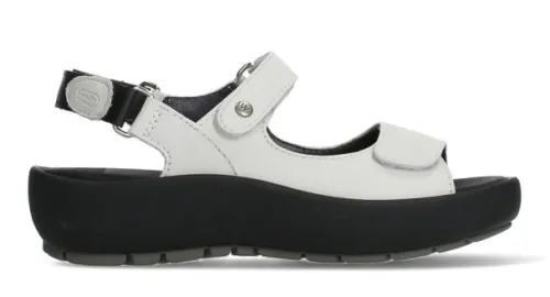 Sandaal van Wolky in wit leer verstelbaar met 2 klittenbanden en een klittenband bij de hiel. Gemaakt op de leest Swing. De sandaal heeft een zeer comfortabele zool met een extra afwikkeling wat het lopen vergemakkelijkt. De voetbedden zijn uitneembaar en daardoor geschikt voor een steunzool. Wolky is een Nederlands merk, wat grotendeels in Portugal geproduceerd wordt. Kenmerkend zijn de zachte zolen waarop u verend loopt. Het lopen op wolken effect. Wolky koopt u online bij Ruttenschoenen.nl