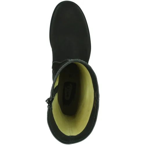 Half hoge laars van Wolky in zwart suède met 2 gespen aan de buitenzijde. Aan de binnenzijde zit een rits en de laars heeft een uitneembaar voetbed en is dus geschikt voor uw eigen steunzool. Op de leest Willis met een platte hak en een rubber zool. ||Wolky is een Nederlands merk, wat grotendeels in Portugal geproduceerd wordt. Ze hebben vaak een wat bredere leest en bieden ook vaak goed ruimte bij de tenen. Kenmerkend zijn de zachte zolen waarop u verend loopt. Het lopen op wolken effect. Wolky wordt dan ook vaak als zeer comfortabel ervaren. Wolky koopt u online bij Ruttenschoenen.nl