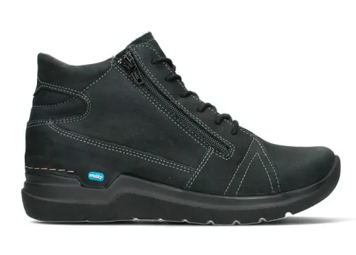Boot van Wolky in zwart nubuck op de leest Wally, dit is een brede ronde leest die veel ruimte bij de tenen heeft. De boot is verstelbaar met een veter en aan de zijkant zit een rits waardoor die makkelijk aan en uit te trekken is. Deze boot biedt veel comfort en heeft een comfortabele zool. De voetbedden zijn uitneembaar en ze zijn dus geschikt voor uw eigen steunzool. ||Wolky is een Nederlands merk, wat grotendeels in Portugal geproduceerd wordt. Ze hebben vaak een wat bredere leest en bieden ook vaak goed ruimte bij de tenen. Kenmerkend zijn de zachte zolen waarop u verend loopt. Het lopen op wolken effect. Wolky wordt dan ook vaak als zeer comfortabel ervaren. Ze hebben vaak een wat bredere leest en bieden ook vaak goed ruimte bij de tenen. Wolky koopt u online bij Ruttenschoenen.nl
