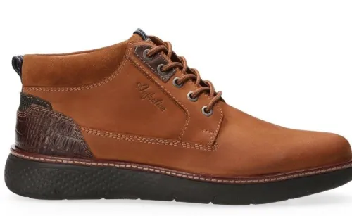 Boot van Australian in cognac nubuck met bruine details. Het voorblad is glad zonder naden. Bij de hiel zit een grove croco print. De boot heeft een gemiddelde breedte en een uitneembaar voetbed en is dus geschikt voor uw eigen steunzool. ||De roots van Australian liggen in 1945 en is begonnen met het tennis segment. Op zoek naar een sterke naam koos men voor Australian omdat de Australische tennissers destijds de ranglijsten aanvoerden. De schoenen van Australian kenmerken zich door stoere en casual heren schoenen. De materiaalkeuze en het spelen met accenten blijkt een belangrijke inspiratiebron. Australian biedt een complete collectie, die inspeelt op de modische trends, maar de klassiekers niet vergeet. Wij verkopen Australian vanaf maat 39 t/m maat 50.(uiteraard zolang de voorraad strekt) Australian koopt u online bij Ruttenschoenen.nl