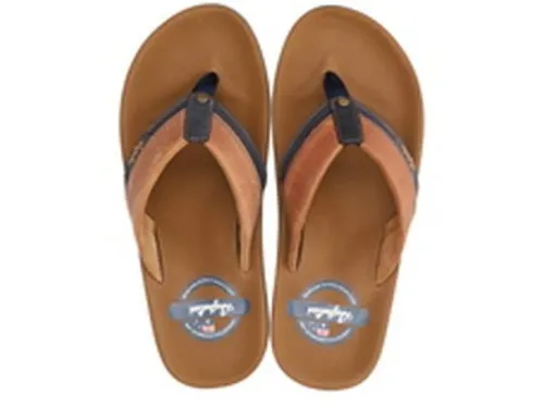Teenslipper van Australian in cognac leer met blauwe accenten. De slipper heeft een comfortabel voetbed en een stevige zool. ||De roots van Australian liggen in 1945 en is begonnen met het tennis segment. Op zoek naar een sterke naam koos men voor Australian omdat de Australische tennissers destijds de ranglijsten aanvoerden. De schoenen van Australian kenmerken zich door stoere en casual heren schoenen. De materiaalkeuze en het spelen met accenten blijkt een belangrijke inspiratiebron. Australian biedt een complete collectie, die inspeelt op de modische trends, maar de klassiekers niet vergeet. Wij verkopen Australian vanaf maat 39 t/m maat 50.(uiteraard zolang de voorraad strekt) vergeet. Wij verkopen Australian vanaf maat 39 t/m maat 50. (uiteraard zolang de voorraad strekt)