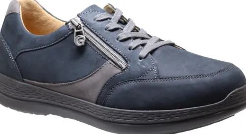 Sneaker van Ganter in blauw nubuck icm grijs nubuck. Aan de zijkant zit een rits waardoor die makkelijk is aan en uit te trekken. Gemaakt voor gevoelige extra brede voeten op een super brede K L wijdte op de leest Karl Ludwig. De schoen is zacht bij de tenen en biedt extra ruimte bij de tenen en is geschikt voor uw eigen steunzool. ||Ganter is een Duits fabrikaat, met diverse leesten en wijdtematen. Zij hebben natuur en milieu hoog in het vaandel. Ze maken tijdloze schoenen en gebruiken daarbij materialen die zo min mogelijk het milieu belasten. Zoals plantaardig gelooid leer, kurken voetbedden, tot aan papier uit duurzame bosbouw