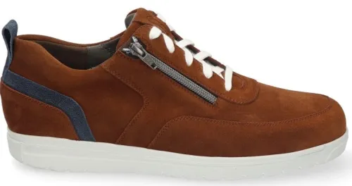 Sneakers van Gijs deze wordt op een semi orthopedische leest gemaakt op een superbrede M plus wijdte. Normaal worden deze schoenen alleen per paar gemaakt. Daar wij veel klanten met brede voeten hebben, hebben wij deze sneakers in serie laten maken. Aan beide zijden zit een rits zodat die makkelijk is aan en uit te trekken. Gemaakt in cognac suede met blauw en een spiegel op de Go leest. Ze hebben ee uitneembaar voetbed dus ze zijn ook geschikt voor uw eigen steunzool. Mede door dat ze apart hier in Nederland worden gemaakt zijn ze duurder dan de gewone leesten van Gijs. ||Gijs komt uit de koker van Durea en staat dus garant voor een goede kwaliteit en pasvorm. Jaren van ervaren ouderwetse vakmanschap ligt hieraan ten grondslag. Inmiddels al een aantal seizoenen verkrijgbaar verovert het zo zijn eigen plekje. Gijs koop je online bij Ruttenschoenen.nl