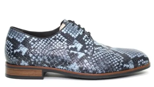 Geklede veterschoen van Gijs in blauw combinatie leer met python prent op een brede H wijdte op de leest 505. De schoen heeft een uitneembaar voetbed en is dus geschikt voor eigen steunzool. Vervaardigd uit kalfsleer met TPU loopzool met een geklede uitstraling. De hak is met leer ingelegd. ||Gijs komt uit de koker van Durea en staat dus garant voor een goede kwaliteit en pasvorm. Jaren van ervaren ouderwetse vakmanschap ligt hieraan ten grondslag. Inmiddels al een aantal seizoenen verkrijgbaar verovert het zo zijn eigen plekje. Gijs koop je online bij Ruttenschoenen.nl