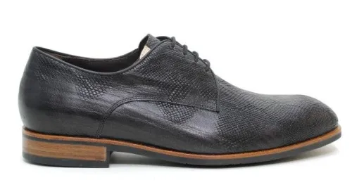 Geklede veter schoen van Gijs in zwart leer met een fijne crocoprint. Gemaakt op een brede H wijdte, op de leest 505. De voetbedden zijn uitneembaar en de schoen is dus prima geschikt voor eigen steunzool. Vervaardigd uit kalfsleer met een TPU zool. De hak is met leer ingelegd. ||Gijs komt uit de koker van Durea en staat dus garant voor een goede kwaliteit en pasvorm. Jaren van ervaren ouderwetse vakmanschap ligt hieraan ten grondslag. Inmiddels al een aantal seizoenen verkrijgbaar verovert het zo zijn eigen plekje. Inmiddels al een aantal seizoenen verkrijgbaar verovert het zo zijn eigen plekje. Gijs koop je online bij Ruttenschoenen.nl