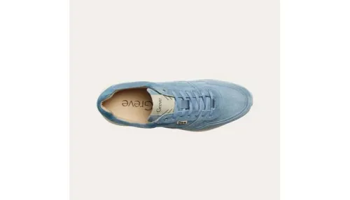 Comfortabele modische sneaker (inclusief een nieuw ontwikkelde zool) is speciaal bedacht voor de Nederlandse voet. Gemaakt op een brede H wijdte op de leest walker in jeans suede met een uitneembare voetbed. Tijdens de ontwikkeling is er extra aandacht besteed aan de kwaliteit van de zool: comfortabel, goede| afwikkeling, stabiel en slijtvast. Leuk feitje, het design van de onderzijde van| de zool is geïnspireerd door ons Nederlandse landschap.| | Greve is een Nederlandse fabriek, in 1898 begon Hermanus Greve met een| schoenmakerij als doel Nederlands meest stijlvolle en superieure schoenen maken.| De filosofie design, comfort en vakmanschap is nog steeds het uitgangspunt.|