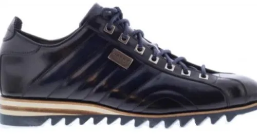 Sneaker van Harris in blauw kalfsleer met aparte details zoals stiksels en vetergaten. De schoen heeft een lange derby sluiting en is met kalfsleer gevoerd. De zool is grof geribbeld. De voetbedden zijn uitneembaar, ||Harris kenmerkt zich als een fabrikant van luxe apart gemaakte herenschoenen vaak in aparte leersoorten en prints. Ook de pasvorm is subliem en ze worden vaak in bijzondere maakwijzes gemaakt.