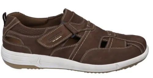 Sandaal of opengewerkte bandschoen van Seibel in bruin nubuck die met klittenband is te verstellen. Fijn als je een wat dichtere sandaal wilt of een luchtige schoen. De voetbedden zijn uitneembaar.
