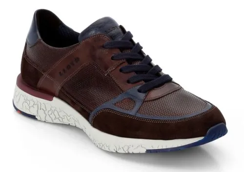 Licht gewicht sneaker van Loyd in bruin leer met suède. Op de spiegel en aan de zijkant zit een fijne print en de schoen heeft blauwe details. De sneaker heeft een heerlijk comfortabel verende zool. Gemaakt op een ruim vallende F wijdte, Lloyd typeert het als F, maar het is zeker een G Wijdte. De voetbedden zijn uitneembaar en de zool heeft een lichte kleur. De voetbedden zijn uitneembaar en ze zijn dus geschikt voor uw eigen zool. ||Lloyd herenschoenen uit Solinger Duitsland sinds 1888, de naam Lloyd ontstond in begin 19e eeuw. Tegenwoordig wordt de schacht en zool in Roemenie gemaakt. Het ontwerp, de ontwikkeling van zool en schoen geschiedt nog steeds in Solinger en ook nog een belangrijk deel van de afwerking van de schoen, waardoor de kwaliteit gewaarborgd blijft. Ook naar de toekomst, worden constant producten en processen geëvalueerd op kwaliteit en efficiency, om verder te blijven ontwikkelen. Lloyd koopt u online bij Ruttenschoenen.nl