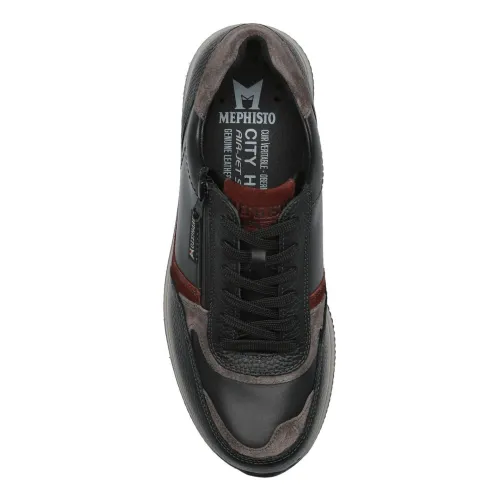 Sneaker van Mephisto in zwart leer met suede en grijs bij de hiel. Gemaakt op ca een H wijdte. Aan de buitenkant zit een rits waardoor als de veter eenmaal goed is ingesteld de schoen makkelijk is aan en uit te trekken. De schoen voelt lekker zacht aan. De zool heeft een profiel en is comfortabel met lopen. De schoen heeft een uitneembaar voetbed en is daardoor geschikt voor uw eigen steunzool. ||Mephisto is een Frans fabrikaat en heeft diverse fabrieken. Mephisto kenmerkt zich als een comfortabele schoen die meestal niet uitgelopen hoeft te worden, ook de zool is zacht en verend. Een echte schoen voor kilometers loopplezier. meestal niet uitgelopen hoeft te worden, ook de zool is zacht en verend. Een echte schoen voor kilometers loopplezier. Mephisto Koopt u online bij Ruttenschoenen.nl