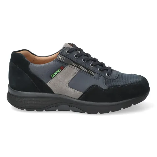 Deze sneaker van Sano by Mephisto heeft een extra afwikkeling in de zool, die het lopen vergemakkelijkt. Een zogenaamde balanszool, waarbij diverse spiergroepen getraind worden bij het lopen. De schoen is vervaardigd uit blauw combinatie leer met suede. Aan de zijkant zit een rits, waardoor die makkelijk is aan en uit te trekken. De voetbedden zijn uitneembaar. ||Sano is een product groep van Mephisto, vervaardigd uit hoogwaardige leersoorten. De balanszool is een speciaal concept wat kenmerkend is voor de Sano. Mephisto komt uit Frankrijk. Sano koopt u online bij Ruttenschoenen.nl