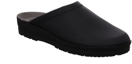 Slipper van Rohde met dichte teen in zwart leer op een G wijdte. Het zijn comfortabele slippers. De voetbedden zijn niet uitneembaar. ||Rohde is van oorsprong een Duitse firma en inmiddels overgenomen door een Italiaan. Rohde wordt hoofdzakelijk in de aziatische landen wordt gefabriceerd.