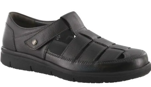 Sandaal van Solidus, met dichte teen en hiel verstelbaar met 1 klittenband op de wreef. Op een brede H wijdte op de leest Hardy in het zwart leer. Deze sandaal heeft een uitneembaar voetbed en is dus geschikt voor uw eigen steunzool. ||Solidus is een Duits fabricaat, met diverse leesten en wijdtematen, van smal tot super breed. Ze gebruiken zachte leersoorten, waardoor ze vaak zeer comfortabel en geschikt voor gevoelige voeten zijn. Voor de zeer gevoelige en of diabete voet, maken ze ook nog een speciale collectie “Solicare” Veel leesten en artikelen komen vaak weer terug, veelal in een andere uitvoering. Solidus koopt u online bij Ruttenschoenen.nl