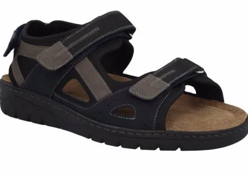 Sandaal van Solidus in blauw combinatie gevet nubuck. De sandaal is verstelbaar met 2 klittenbanden en hielband met een passant. Een passant is een oog waar het klitteband doorheen gaat. Hierdoor kan je met 1 hand de band strakker aantrekken. Langs de randen zit mesh waardoor het zachter aan de voeten voelt. Gemaakt op een brede H wijdte op de leest Man Special. Deze sandaal heeft een uitneembaar voetbed en is dus geschikt voor uw eigen steunzool. ||Solidus is een Duits fabricaat, met diverse leesten en wijdtematen, van smal tot super breed. Ze gebruiken zachte leersoorten, waardoor ze vaak zeer comfortabel en geschikt voor gevoelige voeten zijn. Voor de zeer gevoelige en of diabete voet, maken ze ook nog een speciale collectie “Solicare” Veel leesten en artikelen komen vaak weer terug, veelal in een andere uitvoering. Solidus koopt u online bij Ruttenschoenen.nl