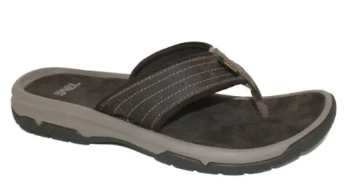 Teenslipper van Teva in bruin nubuck met aan de randen afgezet met mesh. De slipper heeft eencomfortabel voetbed. Er zit een stevige zool onder met profiel. ||Teva vindt zijn oorsprong in de water sport. De riviergids Mark Thatcher ontwierp een sandaal uit noodzaak om veilig de rivier de Colorado te bedwingen zonder uit te glijden op natte rotsen en oneffen terrein of ze zelfs te verliezen. Het originele product is nog steeds een belangrijk onderdeel van de collectie en vormt de basis van alle modellen. Het is uitermate geschikt voor het gebruik in en om het water(de modellen blijven drijven) en is in de loop van tijd ook zeer geschikt gebleken voor bergwandelaars, fietsers, kayakers, wandelaars en parachute springers en op de camping.