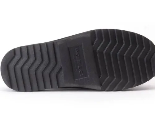 Pantoffelslipper van Warmbat gevoerd met lamsvacht in zwart suede. De slipper heeft een glad voorblad. De pantoffel is lekker zacht op de huid en heeft een comfortabele antislip, slijtvaste en schokdempende zool. ||||Warmbat komt uit Australie waar zij al meer dan 100 jaar wol van de merino schaap gebruiken. Er wordt 100% merino wol gebruikt wat het voordeel geeft van een goede kwaliteit en een goed ademend vermogen. De vezels kunnen tot 30% van het eigen gewicht aan vocht absorberen. ook is deze natuurlijke vacht temperatuur regulerend waardoor ze het hele jaar door zijn te dragen. Daarbij is het van natuur ook antibacterieel