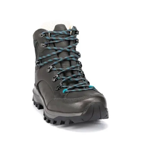 Bergwandelboot van Hanwag op een AB categorie in zwart Yakleer met chroomvrij leer gevoerd. Om werkelijk van iedere stap te kunnen genieten, is de Bangri Lady vervaardigd uit soepel yakleer. Bij de manchet is hij extra soepel. Een flexzone bij de hiel optimaliseert de pasvorm. De Vibram zool biedt een uitstekende demping en een hoge flexibiliteit.De hielversteviging is van leer en er is een flexzone bij de hiel voor een soepele pasvorm. De voetbedden zijn uitneembaar. ||Hanwag maakt al sinds 1921 hoogwaardige wandelschoenen. Alles wordt in Europa gemaakt en ook alle grondstoffen, leer enz. komt uit Europa. Er is 1 uitzondering en dat is het Yakleer dit komt uit Mongolie